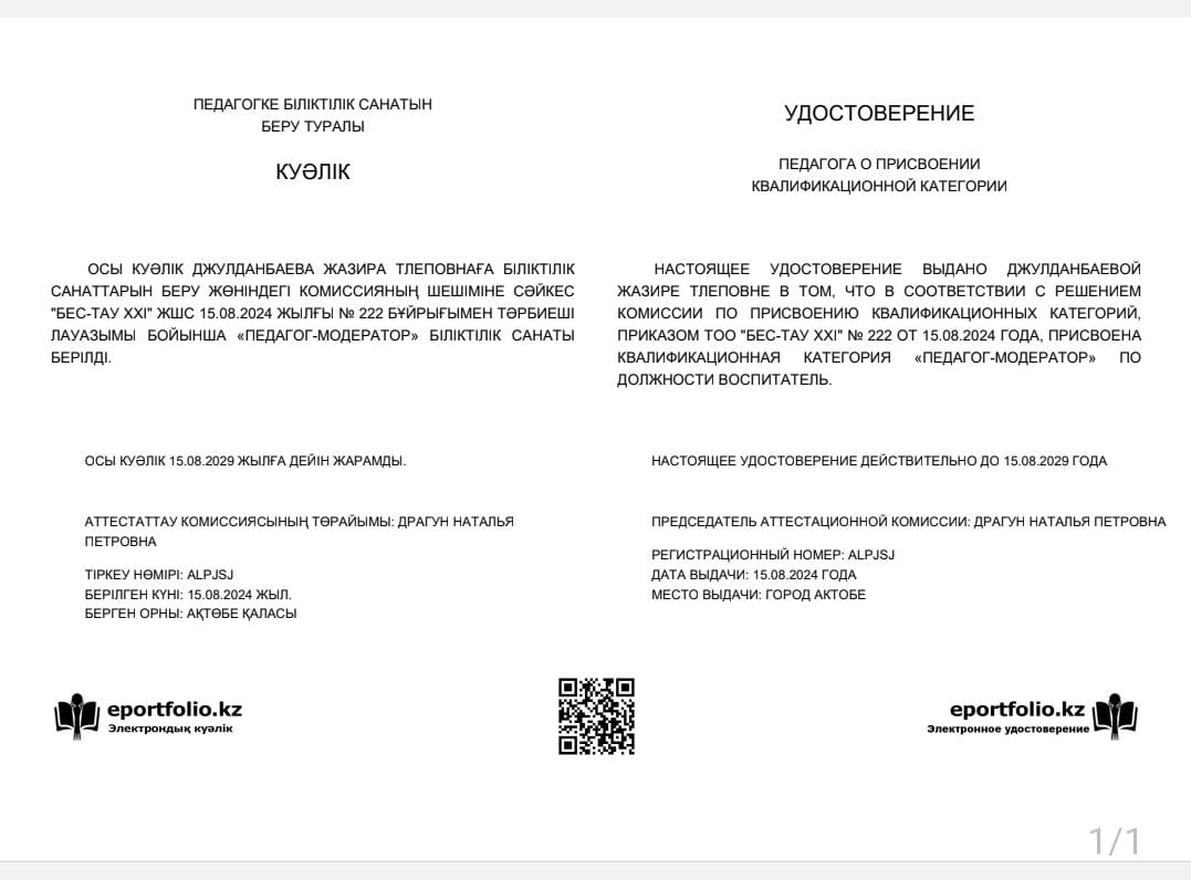 Аманат-1 әң ҰОІӘ кестесі 2022-2025