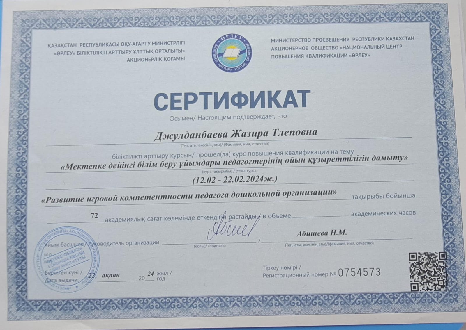 Аманат-1 ұйымдастырылған іс-әрекетінің кестесі